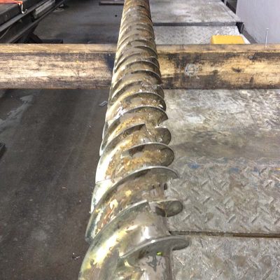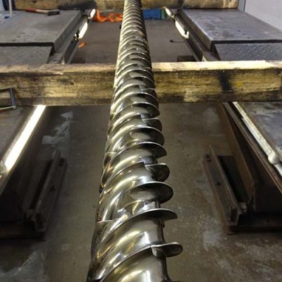 Extruderschnecke aus der Kunststoffverarbeitung vor und nach Reinigung mit Trockeneis